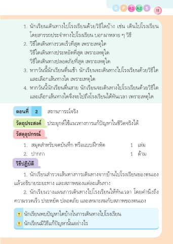 2. นักเรียนวางแผนการเดินทางไปโรงเรียนให้ทันเวลา โดยคำานึงถึง