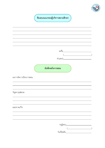 ข้อเสนอแนะของผู้บริหารสถานศึกษา