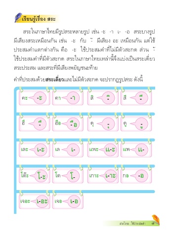 ใช้ประสมคำาท่มีตัวสะกด สระในภาษาไทยเหล่านี้จึงแบ่งเป็นสระเดี่ยว