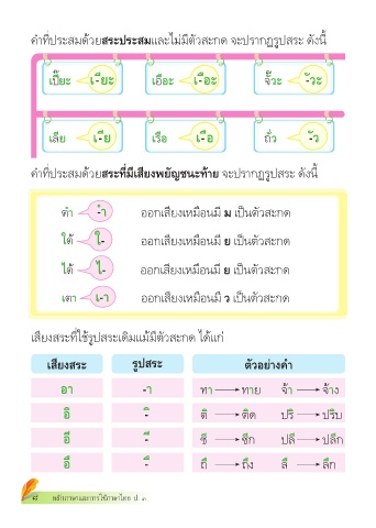 คำาที่ประสมด้วยสระประสมและไม่มีตัวสะกด จะปรากฏรูปสระ ดังนี้