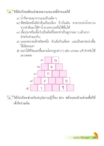 ๓. ให้นักเรียนเขียนคำ�จ�กคว�มหม�ยที่กำ�หนดให้